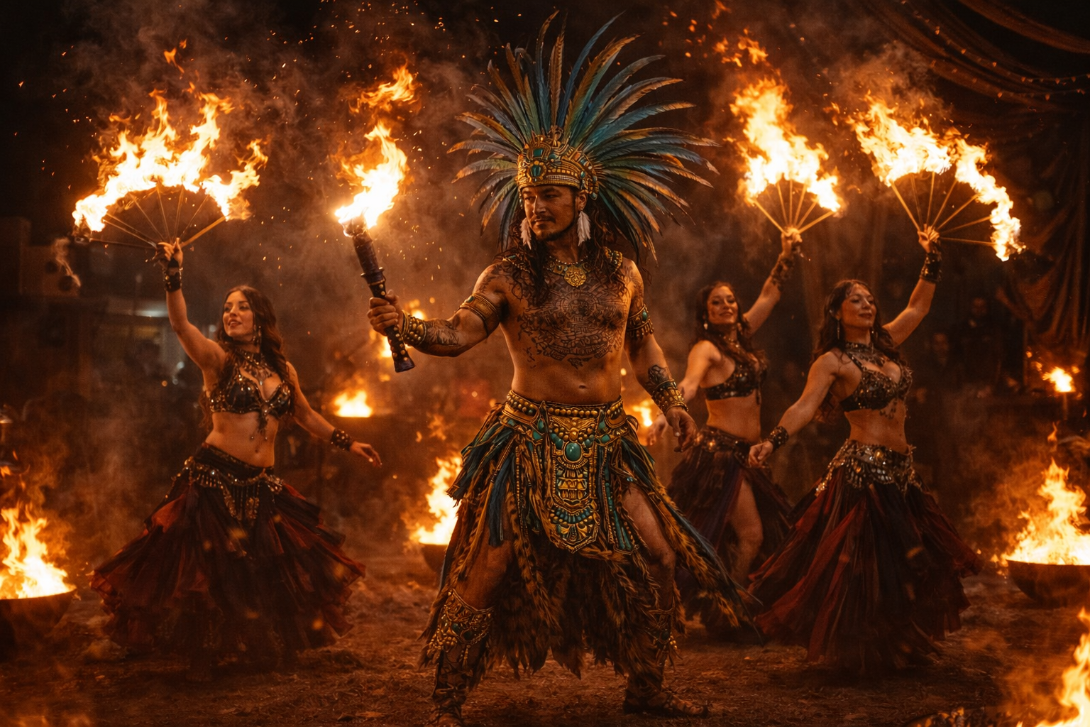 Danza del Fuego is more than a musical expression—it is a commanding stage experience brought to life by an electrifying troupe of Aztec Fire Dancers within the Flair Affair Entertainment Multiverse of talent.