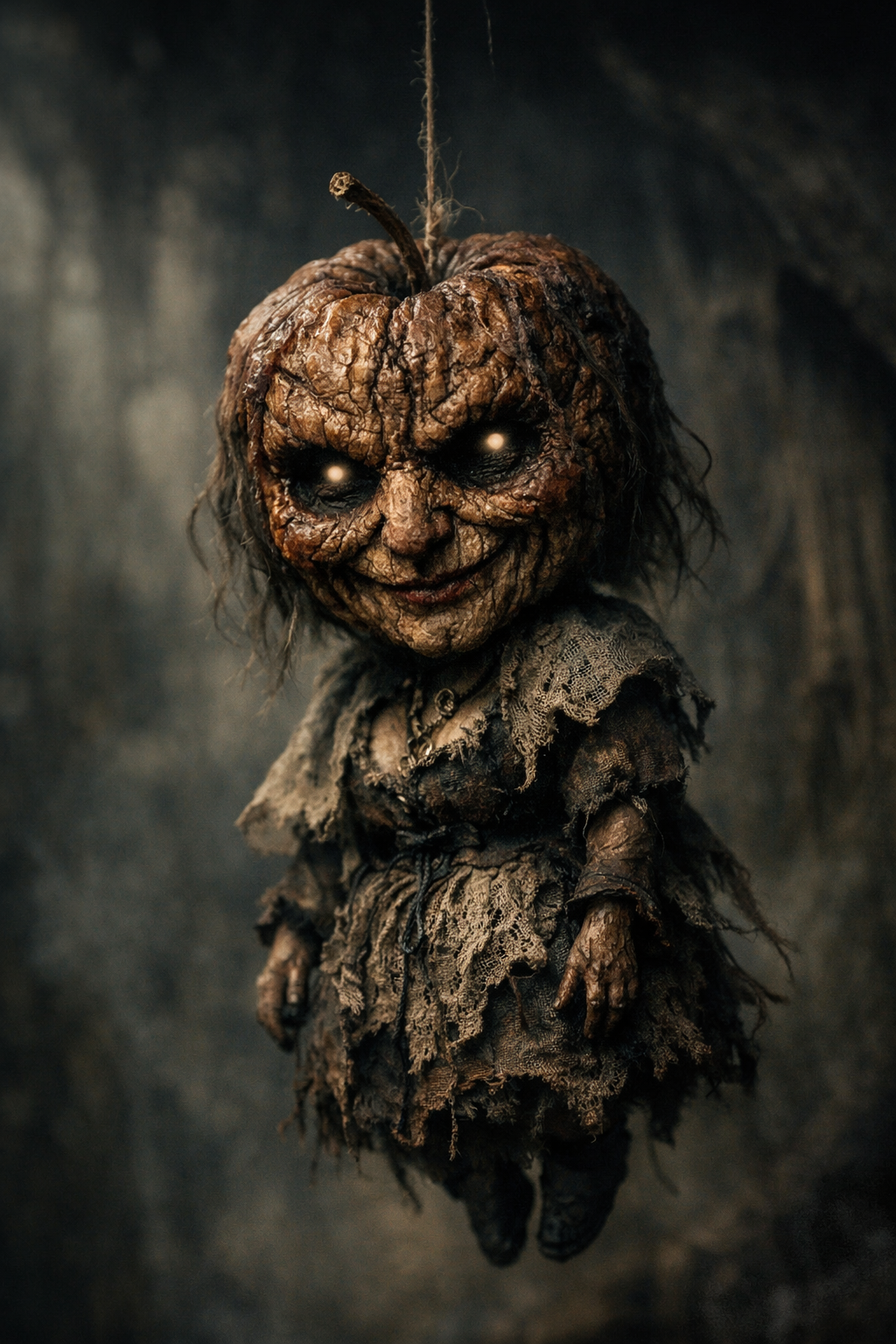 Her form shriveled, preserved like a dried apple — a symbol of something once whole, now transformed and enduring. Her face remained… but altered, stretched into something cunning and unreadable.